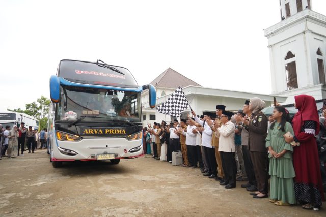 SWARNANEWS.CO.ID, BANYUASIN – Bupati Banyuasin Dr. H. Askolani, S.H., M.H lepas keberangkatan 231 jama’ah haji asal Kabupaten Banyuasin tahun 2025 di Masjid Agung Al-Amir pada Senin sore (26/5), para jama’ah haji selanjutnya akan diberangkatkan ke Arab Saudi pada esok dini hari.