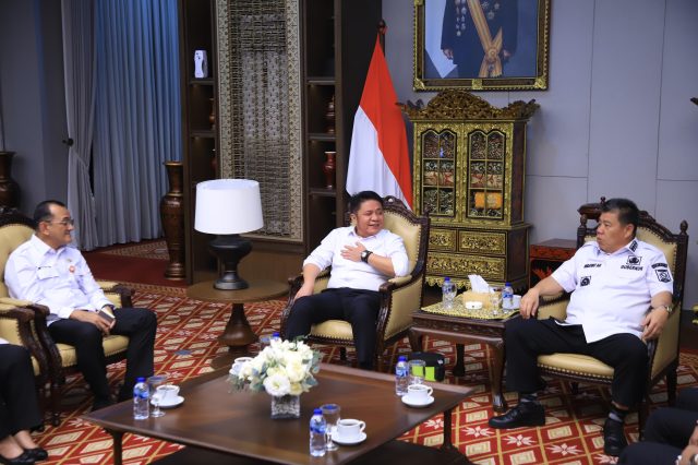 SWARNANEWS.CO.ID, PALEMBANG — Gubernur Sumatera Selatan (Sumsel) H. Herman Deru menerima kunjungan Gubernur Kepulauan Bangka Belitung (Babel) Hidayat Arsani di Griya Agung Palembang, Rabu (18/6/2025).