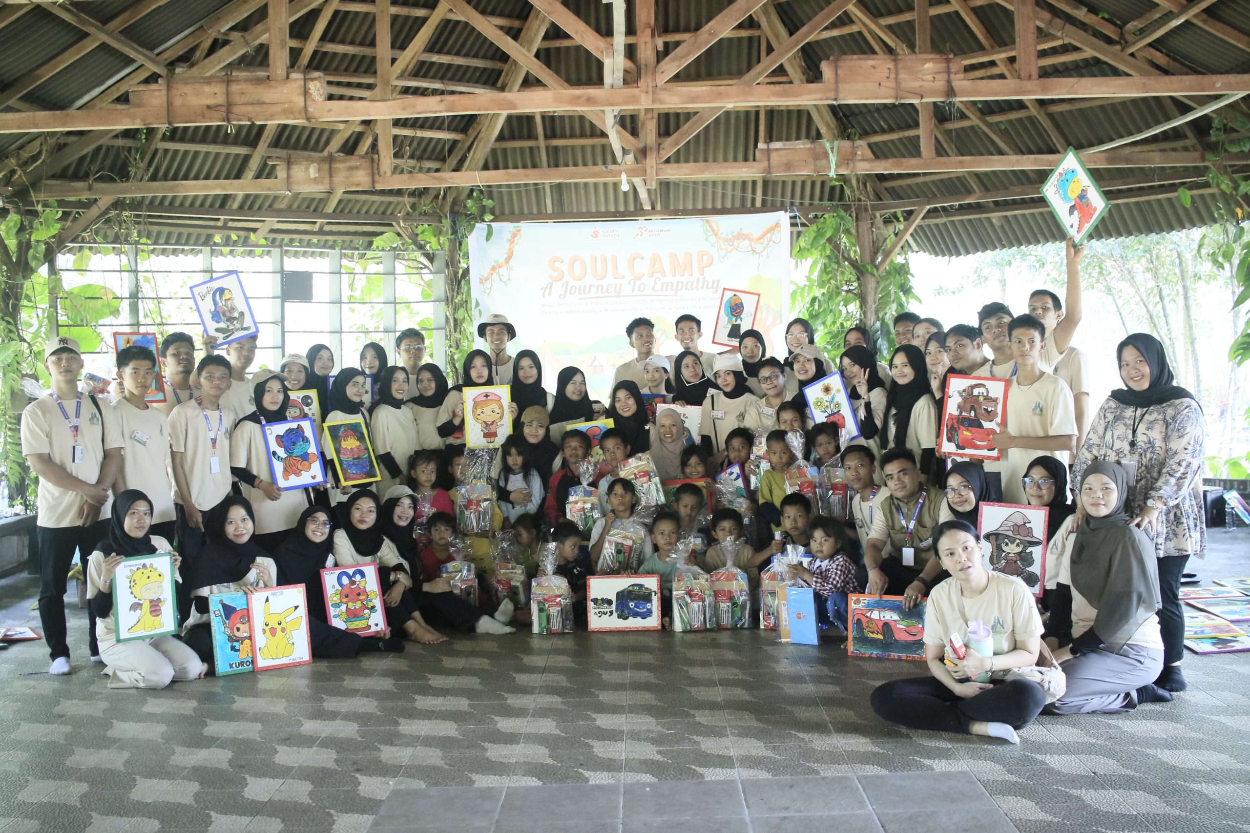 Selain pembagian parsel alat tulis, kegiatan Soul Camp turut diramaikan dengan berbagai aktivitas edukatif dan hiburan seperti melukis bersama, fun games, hingga lomba berhadiah. Suasana makin hangat saat relawan dan anak-anak menikmati makan bersama serta tukar kado.