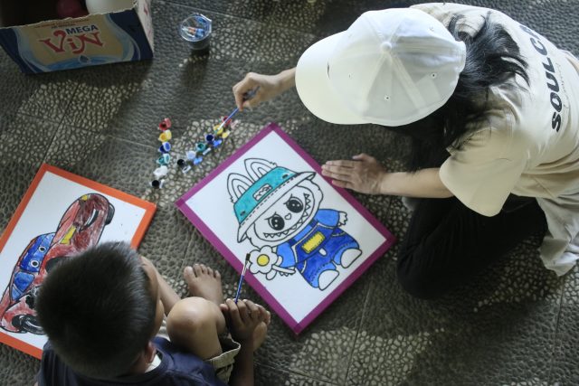 Tak hanya itu, bakat seni anak-anak juga turut diasah melalui sesi melukis yang dipandu dengan sabar oleh para relawan. Terlihat jelas antusiasme anak-anak yang asyik menorehkan warna-warni pada kanvas mereka, menciptakan karya-karya sederhana namun penuh makna.