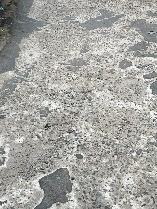“Kalau hujan licin sekali, anak-anak yang berjalan kaki juga sering kesulitan karena jalannya banyak yang terkelupas,” ungkap seorang warga setempat.