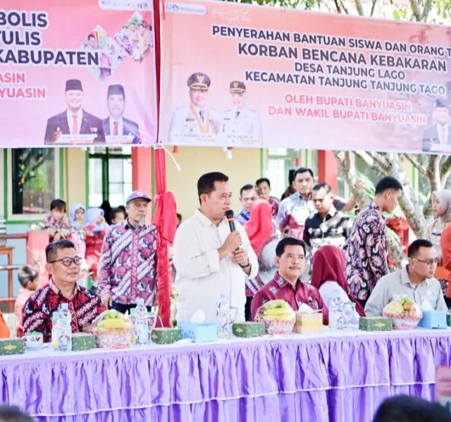 SWARNANEWS.CO.ID, BANYUASIN – Bupati Banyuasin Dr. H Askolani menyerahkan bantuan perlengkapan sekolah dan juga bantuan sembako kepada korban kebakaran di Desa Tanjung Lago, Kecamatan Tanjung Lago, Kamis (9/10/2025).