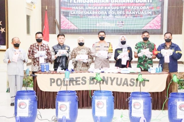 Pemusnahan yang berlangsung pada Jumat siang (13/2/2026) di aula sanika satyawada polres Banyuasin ini dipimpin langsung oleh Kapolres Banyuasin AKBP Risnan Aldino, S.I.K., M.Si.