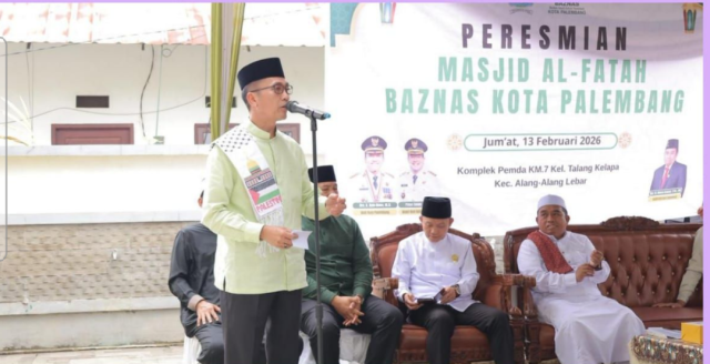 SWARNANEWS.CO.ID, PALEMBANG – Wali Kota Ratu Dewa meresmikan Masjid Al-Fatah Baznas Kota Palembang. Berlokasi di Komplek Pemda KM 7, Kelurahan Talang Kelapa, Kecamatan Alang-Alang Lebar, Jumat (13/2/2026).