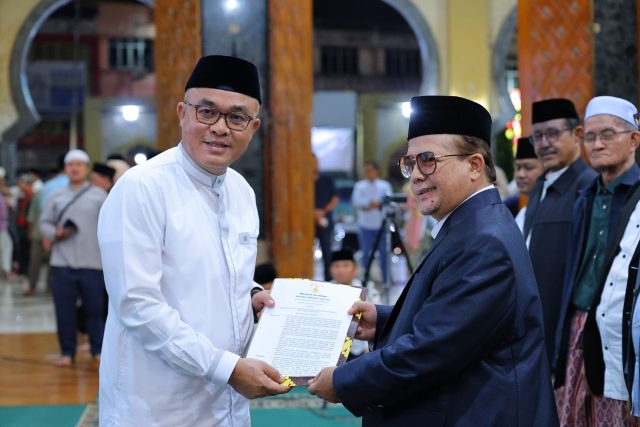 Hal tersebut disampaikan Sekretaris Daerah Kota Palembang Aprizal Hasyim saat menghadiri Sholat Isya dan Tarawih berjamaah yang dilanjutkan dengan Peringatan Hari Besar Islam Nuzulul Qur’an 1447 H/2026 M di Masjid Darussaid Kota Palembang, Sabtu (7/3/2026).