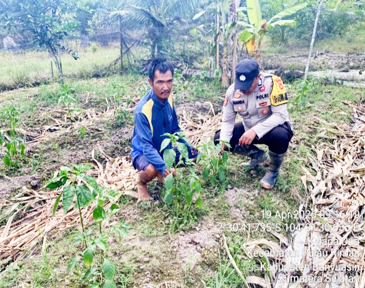 SWARNANEWS.CO.ID, BANYUASIN,- Dalam rangka mendukung program prioritas Presiden Republik Indonesia di bidang swasembada pangan nasional, Bhabinkamtibmas Polsek Pulau Rimau, Polres Banyuasin, menggelar kegiatan imbauan dan penggerakan masyarakat melalui Program P2B (Pangan, Ketahanan, dan Kemandirian Pangan).