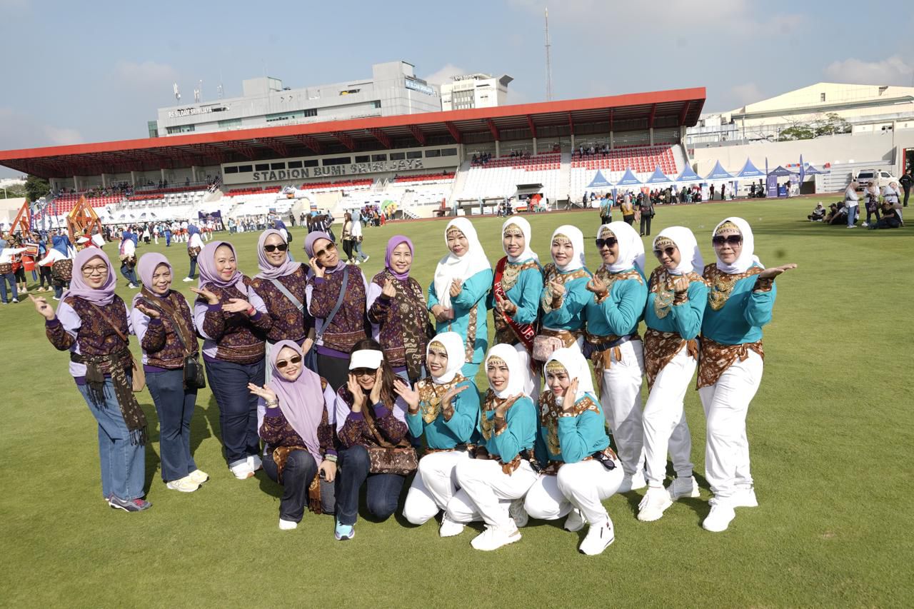 Atmosfer kemeriahan sudah terasa sejak awal kegiatan. Ribuan peserta yang didominasi kaum perempuan tampil penuh semangat, mengikuti setiap gerakan dengan kompak, energik, dan penuh keceriaan.